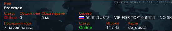 Играет на Counter Strike Global Offensive сервере. Страна: РоссияПервый раз замечен 23:05 04.02.2026