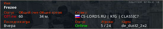 Последний раз был в сети Вчера Игрок с таким ником замечен на 6 серверах