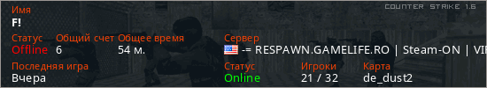 Играет на Counter Strike 1.6 сервере. Страна: СШАПервый раз замечен 07:15 08.02.2026