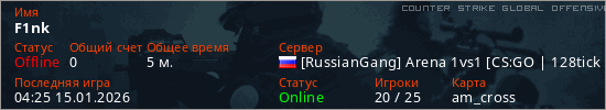Играет на Counter Strike Global Offensive сервере. Страна: РоссияПервый раз замечен 03:47 15.01.2026