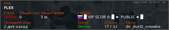 Играет на Counter Strike 1.6 сервере. Страна: РоссияПервый раз замечен 09:29 11.02.2026
