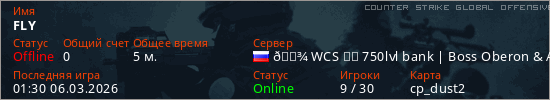 Играет на Counter Strike Global Offensive сервере. Страна: РоссияПервый раз замечен 01:02 06.03.2026
