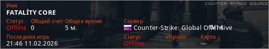 Играет на Counter Strike Source сервере. Страна: РоссияПервый раз замечен 21:36 11.02.2026