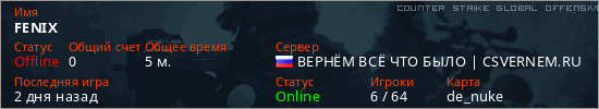 Играет на Counter Strike Global Offensive сервере. Страна: РоссияПервый раз замечен 15:42 26.04.2026