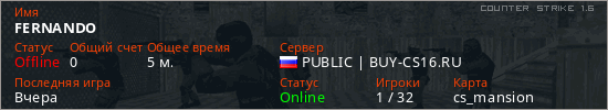 Последний раз был в сети Вчера Игрок с таким ником замечен на 13 серверах