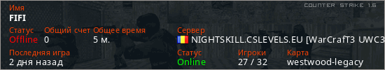 Последний раз был в сети 2 дня назад Игрок с таким ником замечен на 3 серверах