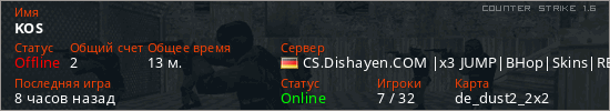 Последний раз был в сети 6 часов назад Игрок с таким ником замечен на 21 сервере