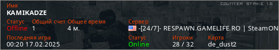 Играет на Counter Strike 1.6 сервере. Страна: СШАПервый раз замечен 00:07 17.02.2025