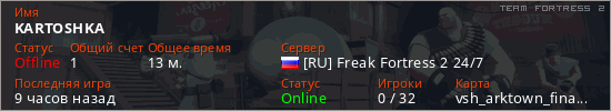Играет на Team Fortress 2 сервере. Страна: РоссияПервый раз замечен 18:48 08.03.2026