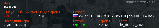 Играет на Counter Strike 1.6 сервере. Страна: РоссияПервый раз замечен 21:09 15.04.2026