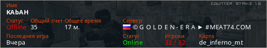 Играет на Counter Strike 1.6 сервере. Страна: РоссияПервый раз замечен 03:17 04.02.2026