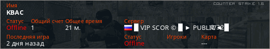 Играет на Counter Strike 1.6 сервере. Страна: РоссияПервый раз замечен 09:15 13.03.2026