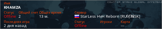 Играет на Counter Strike Global Offensive сервере. Страна: РоссияПервый раз замечен 20:06 04.02.2026