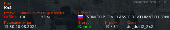 Играет на Counter Strike 1.6 сервере. Страна: РоссияПервый раз замечен 13:16 19.08.2024
