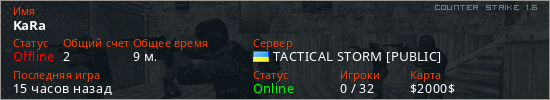 Играет на Counter Strike 1.6 сервере. Страна: УкраинаПервый раз замечен 16:20 16.02.2026