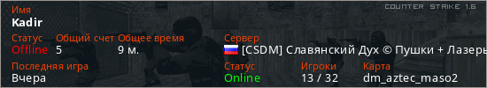 Последний раз был в сети Вчера Игрок с таким ником замечен на 9 серверах