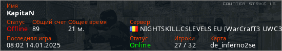 Последний раз был в сети 08:02 14.01.2025 Игрок с таким ником замечен на 4 серверах