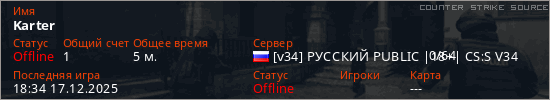 Играет на Counter Strike Source сервере. Страна: РоссияПервый раз замечен 18:32 17.12.2025