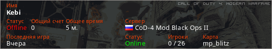 Играет на Call of Duty 4: Modern Warfare сервере. Страна: РоссияПервый раз замечен 08:44 26.04.2026