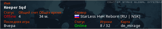 Играет на Counter Strike Global Offensive сервере. Страна: РоссияПервый раз замечен 20:27 01.02.2026