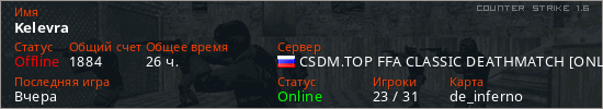 Последний раз был в сети Вчера Игрок с таким ником замечен на 5 серверах