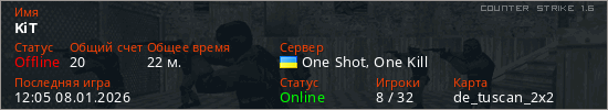 Играет на Counter Strike 1.6 сервере. Страна: УкраинаПервый раз замечен 04:28 06.01.2026