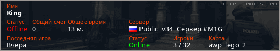 Последний раз был в сети Вчера Игрок с таким ником замечен на 50 серверах