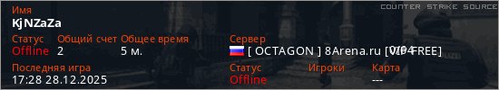 Играет на Counter Strike Source сервере. Страна: РоссияПервый раз замечен 17:23 28.12.2025