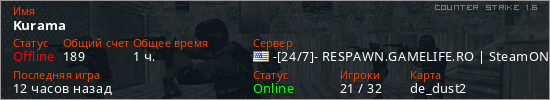 Последний раз был в сети 5 часов назад Игрок с таким ником замечен на 20 серверах