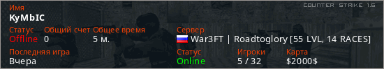 Последний раз был в сети Вчера Игрок с таким ником замечен на 4 серверах