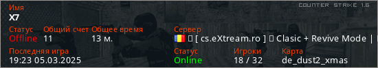 Играет на Counter Strike 1.6 сервере. Страна: РумынияПервый раз замечен 17:05 28.10.2024