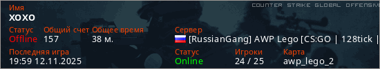 Играет на Counter Strike Global Offensive сервере. Страна: РоссияПервый раз замечен 14:16 08.02.2025