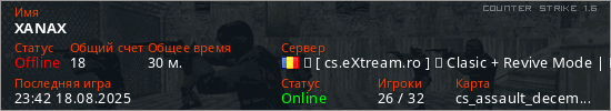Играет на Counter Strike 1.6 сервере. Страна: РумынияПервый раз замечен 00:34 31.10.2024