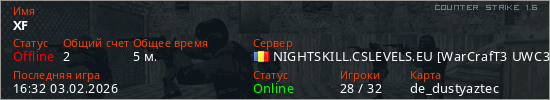 Последний раз был в сети 16:32 03.02.2026 Игрок с таким ником замечен на 9 серверах