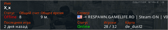 Играет на Counter Strike 1.6 сервере. Страна: СШАПервый раз замечен 18:50 08.02.2026