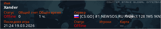 Играет на Counter Strike Global Offensive сервере. Страна: РоссияПервый раз замечен 21:48 13.03.2026
