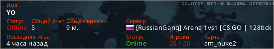 Играет на Counter Strike Global Offensive сервере. Страна: РоссияПервый раз замечен 20:37 19.06.2025