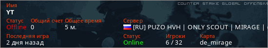 Играет на Counter Strike Global Offensive сервере. Страна: РоссияПервый раз замечен 14:54 22.03.2026