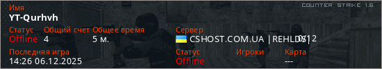 Играет на Counter Strike 1.6 сервере. Страна: УкраинаПервый раз замечен 14:03 06.12.2025