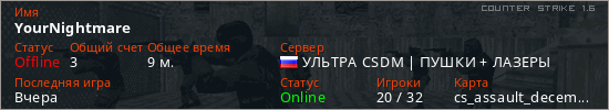 Последний раз был в сети Вчера Игрок с таким ником замечен на 7 серверах