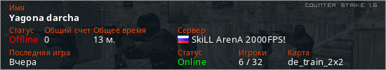 Последний раз был в сети Вчера Игрок с таким ником замечен на 10 серверах