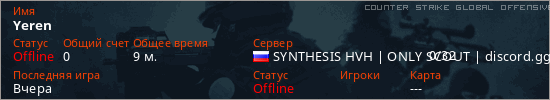 Играет на Counter Strike Global Offensive сервере. Страна: РоссияПервый раз замечен 22:08 19.04.2026