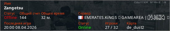 Играет на Counter Strike 1.6 сервере. Страна: ФранцияПервый раз замечен 10:10 04.04.2026