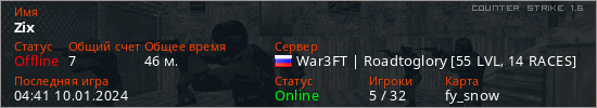 Играет на Counter Strike 1.6 сервере. Страна: РоссияПервый раз замечен 00:13 20.12.2023