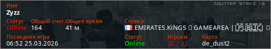 Играет на Counter Strike 1.6 сервере. Страна: ФранцияПервый раз замечен 06:29 25.03.2026