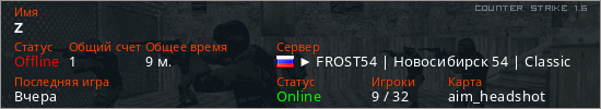 Последний раз был в сети Вчера Игрок с таким ником замечен на 54 серверах