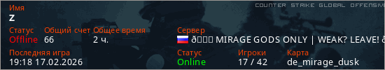 Играет на Counter Strike Global Offensive сервере. Страна: РоссияПервый раз замечен 15:58 06.02.2024