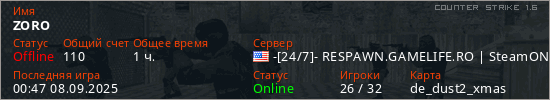 Последний раз был в сети 00:47 08.09.2025 Игрок с таким ником замечен на 28 серверах