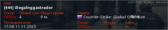 Играет на Counter Strike Source сервере. Страна: РоссияПервый раз замечен 17:11 11.11.2025