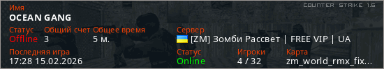 Играет на Counter Strike 1.6 сервере. Страна: УкраинаПервый раз замечен 17:15 15.02.2026